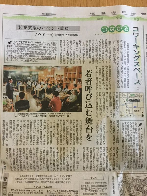 信毎のコワーキングスペース特集にKnower(s)をご掲載いただきました