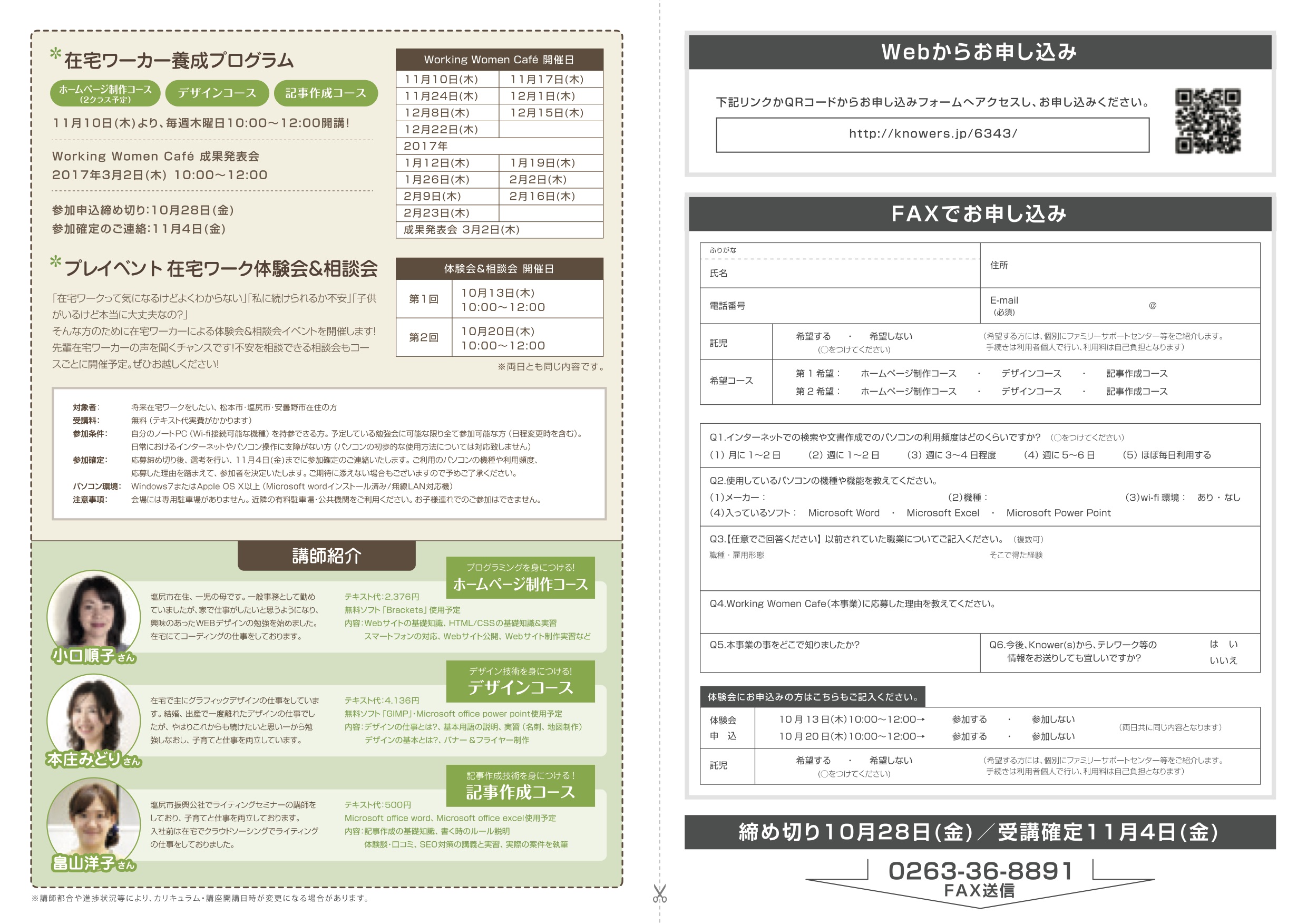 以下URLまたはこちらのPDFをダウンロードいただき0263-36-8891までFAXしてください。